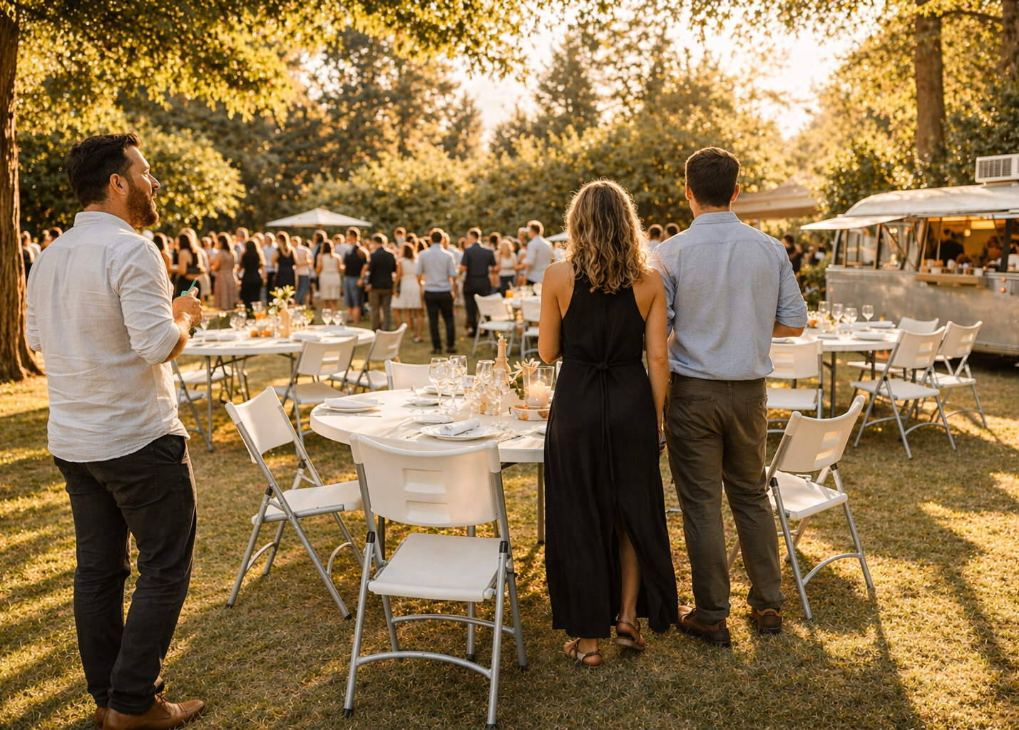 Rappelez-vous cette date spéciale. Ce jardin au coucher du soleil. Les lumières chaudes sur les nappes blanches. Le murmure des conversations mêlé à la musique et au tintement des verres. Cet instant n'a pas eu lieu par hasard — quelqu'un avait pensé à chaque détail à l'avance pour que vous puissiez aujourd'hui vous en souvenir avec le sourire.
